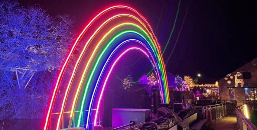 Illuminations féériques à la Gacilly qui a sorti le grand jeu pour vous en mettre plein les yeux avec une mise en lumière SPECTACULAIRE ! Des averses de neige de lumière éclatent sur les murs, sur la place, créant une atmosphère pleine de magie. Et un magnifique arc-en-ciel se déploie sur le pont surplombant l'Aff. C'est magique !