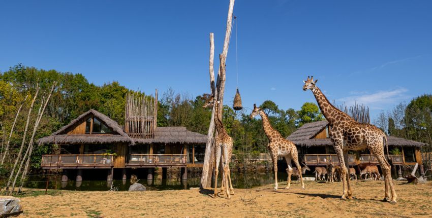 Pour profiter pleinement de votre visite, Planète Sauvage propose différents types d'hébergements : les lodges devant la plaine des girafes, en face à face avec les guépards, les lions et bientôt les tigres, mais aussi deux campements Bivouacs au coeur du Safari.